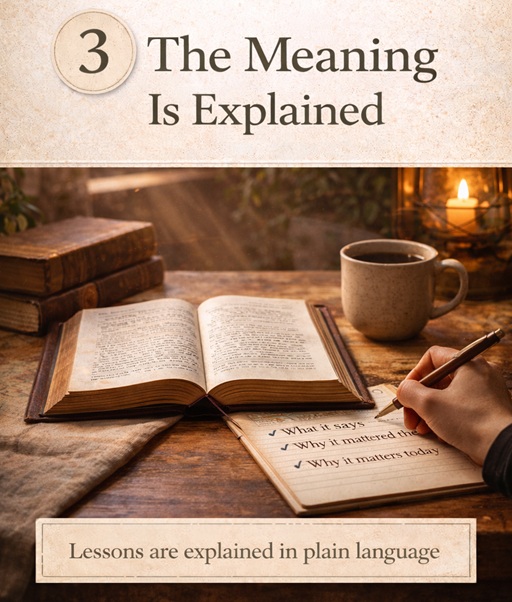 The goal is understanding—not interpretation pressure. You’re not told what to think, only what the text is saying and why it matters.
